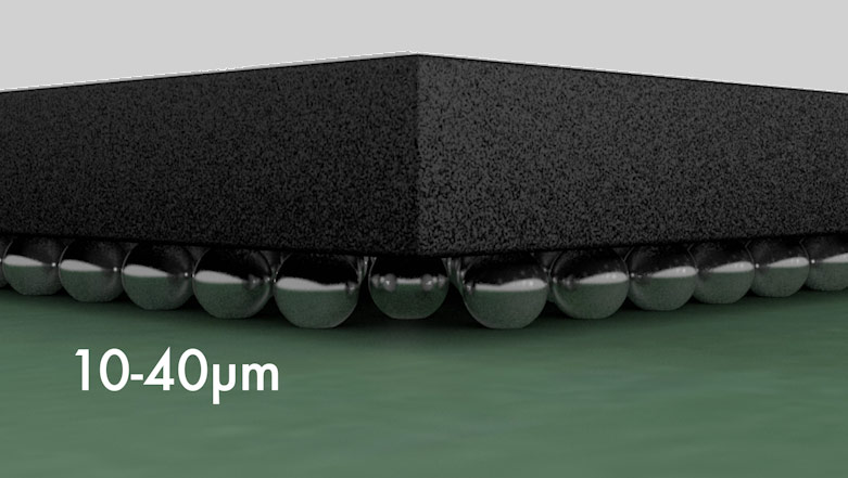Anders verhält es sich bei der Produktion von Advanced Packaging Komponenten wie Flip Chips oder System in Packages wie PoPs, TSVs oder 3D ICs mit Microbumps und Copper Pillars. Hier bewegen sich die Abstände nur zwischen 10 – 40µm.