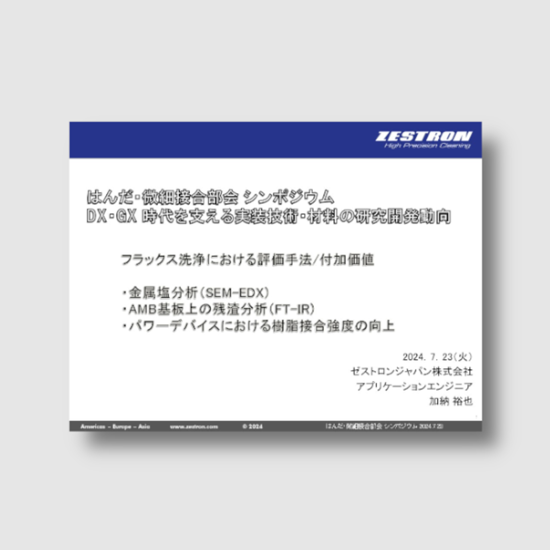 はんだ・微細接合部会 シンポジウム2024 フラックス洗浄における評価手法/付加価値