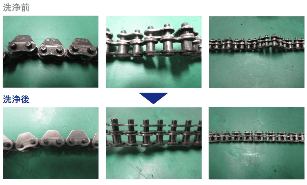 搬送チェーン洗浄事例