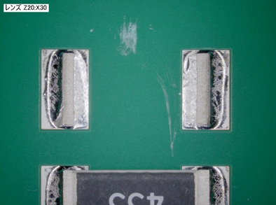 ▼チップ抵抗下部のフラックス残渣